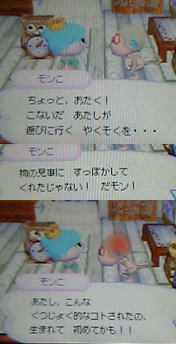 やっちゃった・・・ 2回目なんです・・・・。 との約束をすっぽかしちゃったの・・・。 前回すっぽかしてから、ようやく機嫌も直ったかなと思いながらも、いくら話しかけても、何も要求してこないんです。 当たり障りの無い話ばかりで ・・・ε-(;ーωーA フゥ… で、夕べやっと家に来る約束したのに・・・寝ちゃった!! すんごい剣幕!!恐い・・・・。 一度家を出て、入ったら・・・・ まだ、恐い・・・。 なので、ファイアーバープレゼントしちゃった! 機嫌が直るといいなぁ・・・ ♥ More from my site2006-05-15 カブ価グラフの設置2007-04-08 アンヌのお誕生日2006-10-03 3号の誕生日2006-06-13 出戻りかぁ?! By mariottie | 2006-08-22 | 森の住人達 | ← 最後の人形 やっちゃった(続) → 5 thoughts on “やっちゃった・・・” AKRMA 2006-08-23 at 15:06 >アイボさん お役に立てなくて、本当にすみません。。 また、良かったら遊びに来てくださいね♪ アイボ 2006-08-23 at 03:57 管理人様、こんばんは~ アドバイスありがとうございます 変な質問ばかりですいませんです~^^;; またおねがいしますね~ ぺこ <(_ _)> AKRMA 2006-08-22 at 22:31 >アイボさん こんばんは!サル情報は未だに良く分からないですが、 取りあえず6匹のようですね。。 それからお金の木の事ですが、私もまだ初心者なので、 細かい事は良く分からないのです。 だって、まだお金のなる木を育てた事がありません・・。 なので、出来れば色々な方に聞きたい場合は、その手のサイト(攻略?) で質問してみては如何でしょうか? 分かればお答えできるのですが、まだ試行錯誤の段階なのでm(_ _"m)ペコリ お役に立てなくて申し訳ないです。。 >HANA*さん いらっしゃ~い! 本当に5分後なら忘れないのに・・・(爆 いい時間帯ついて来ますよね・・(涙 な~んだ、私だけじゃなかったのね(≧m≦)ぷっ! でも、今回は解決ですヾ(〃^∇^)ノわぁい♪ さて、アクセス解析ですが・・・不思議なこともあるのですね?! なんで、『テンプルちゃん』で検索しないのかしら?!! カサブランカ村ってそんなに珍しいとも思わないのですが。 笑っちゃいますね・・・www アクセス解析も覗いて見ると、面白いですよね。 ま、見たくない面を見る場合もありますがね・・・(困 ご報告ありがとうございました!また、遊びに行きます♪ HANA* 2006-08-22 at 21:49 AKRMAさん(*>ノ∀<){こんばんわ☆彡 私も訪問の約束しょっちゅうすっぽかしてますr(〃ω〃) 三十分後ってのがちょうど忘れやすい時間帯(?)www 5分後くらいでいいのにねぇ(笑) ところで最近興味深いある事を発見しました(* ̄▽ ̄*) ウチのブログ、アクセス解析つけてるんですけど たまたまこの前リンク元を調べたら『カサブランカ村*日記』をグーグルで検索して来てる人がいたんですよ(>▽<) そろがねw 殆ど毎日、または1日おきくらい同じキーワード(カサブランカ村日記)で検索してウチに来てるの(ノ∀`;) そんなにしょっちゅう見るならお気に入りに登録すればいいのにねぇ(笑)(笑) …って、それだけなんですけど何かARKMAさんに報告したくって書いちゃいました(*´(エ)`*) アイボ 2006-08-22 at 16:06 皆様、こんにちは~又来ました^^; 住人に関する情報どもでした。 ひとまず、わかってるサル君たち全部こないかな?w 無理かもですね^^; 話変わりますけど、お金の木はうまくいくと数本は生えるのでしょうか? 家は実がなってもうかるぞ~~って、ゆすって落としたらそれっきり・・なにもならず。。ちなみに1本です。。 仕切りなおしで植えたら又1本は実をつけましたがその後は、まったくだめです。。 1本以上は・・生えないのかな??? では、失礼します。ぺこ <(_ _)>