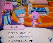 チッチの誕生日で チッチのお誕生日!全員でお祝いに行きましたよ。 中でも、マリオッティちゃんのプレゼントのお返しが ・・・唯一持っていなかった『ふるいレンガのかべ』でラッキーでした チッチちゃん、何回目のお誕生日かは知らないけど、おめでとう~! ♥ More from my site2007-05-07 ショック!2007-04-06 今日もおい森だよ2007-04-08 アンヌのお誕生日2006-11-21 なんで、黙って・・・ By mariottie | 2006-08-23 | 森の住人達 | ← やっちゃった(続) グレースの服 → 2 thoughts on “チッチの誕生日で” AKRMA 2006-08-24 at 08:42 >あずきさん チッチのお誕生日会は、全国至る所で開かれたのでしょうね♪ お蔭様で、チッチは全然虫とか魚とかねだらないから 最初に贈った家具のままです。それゆえに・・・ シリーズで送っておけば良かったという感じです(笑) あずき 2006-08-23 at 19:28 Happy♪(* ̄ー ̄)ノ"iiii Birthday♪チッチ マリオッティちゃんの村のチッチのお部屋の中は たくさんの家具に囲まれているのね~ うちなんて、あれほどラブリー家具をプレゼントしたのに 今は虫だらけガクッ_| ̄|○||| 残っている家具はキッチンだけよ( ̄m ̄〃)ぷぷっ!
