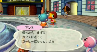 懐かしの友達 今日は街へ行ったら、丁度アンヌに遭遇しちゃいました。 DSの村では永住だったアンヌちゃん。お会いできて嬉しいです(笑 でも、お話は相変わらず気位高いセレブリティなアンヌちゃんでした♪ そして、街をぶらついて昨日行ったグレースのお店では、商品は変わっていませんでした。日替わりではないんですね。良かった! というのも、欲しい帽子があったのです。 でも、高額で・・・。だから、諦めていたのですが、明日のフリマで少し稼いだら、絶対に買いに来ようと思うマリオッティでした。 ♥ More from my site2011-08-24 街でも雷雨2011-02-11 知らなかったこと2011-04-28 緊急脱出!2011-01-31 街で再開 By マティ | 2008-11-22 | 街での出来事 | ← 劇場では 発見いろいろ → 6 thoughts on “懐かしの友達” AKRMA→うさぎさん 2008-11-23 at 11:18 似ていますが、私はうさぎさんほどはマメにできないし負けていますよ~(笑 でも、メインブログの投稿が街もりだらけになるのは、目に見えていたので今回は作りました~w 何時までマメに更新できるか分かりませんが、とにかく楽しいので、一日一投稿を目指して頑張ります(笑 先ほどブログにお邪魔してきました! 一日目の生活がすごく詳細に書かれていて、楽しませてもらいましたw 見た人は、きっと欲しくなるでしょうね。悪い人(笑 ではでは、ぜひ通信を~w AKRMA→さとさん 2008-11-23 at 11:16 そう!そうなんですよね! 覚書で昨日アップしようと思っていたのですが、リビングで 爆睡しちゃってできませんでした(笑 後で、新しい発見の記事をアップしますw ありがとうございます! さと 2008-11-22 at 23:23 そうそう 多分気が付いていると思いますが、村に生えてるきのこ、抜いてみてくださいねw ムフフww *うさぎ* 2008-11-22 at 23:15 こんばんは。 あちこちのAKRMAさんのブログに足跡&コメ残しまくりの”うさぎ”です。 なんだか似てますね。 そーなんですよ。カテゴリー分けで更新すればいいのに ついつい別々のブログにしちゃうんですよね。 まちもりデビューの際は写真の機能に便利さを感じながら いっぱい撮ったのに(説明書を読まないうさぎとしては)SDに保存をしないでバシバシやってPCに取り込んだら1つもなかった(やっちまったなーでした) 是非、お時間ある時に通信してくださいね。 まずは果物交換ですね。DS当初が懐かしいけど ベルが0、道具がないはつらいです。 AKRMA→さとさん 2008-11-22 at 19:19 え?それでは、ソフトでデータが違うわけではないのかしら? 街に関しては、全データが同じように動くのかしらね? う~んいろいろ少しずつ分かってきますね♪ 帽子・・・いいなぁ♪がんばる! さと 2008-11-22 at 18:46 ぼうし、可愛いですよね~。 ついついGETしちゃいましたよw でも、服が貧弱なため似合いません・・・・クスン