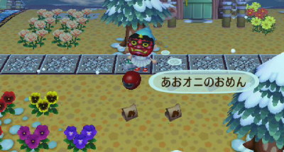 ちょっと焦りましたが(爆、取り合えずあかオニのおめんゲット!そして、昨日引っ越してきたゆりねえさまにお願いして、おあオニのおめんもゲットです(笑