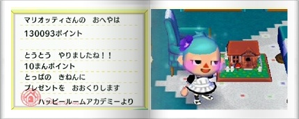 10万点突破 日曜日に送られてくるハッピーアカデミーのお部屋評価のポイント。 このたびめでたく10万ポイントを突破ということで、景品つきお手紙が届きました^^ この評価って、おうち全体でするのですか? なんだか、地下室をプリンセスシリーズにしたとたんに5万点くらい上がったので、そうかなと。。。。って攻略本見ようよ!!(爆。 ♥ More from my site2013-07-19 ひばいひんのアイテムを2013-06-20 売るんだ?!2013-06-28 置けるのね!2013-03-29 ギリギリ陳列棚 By AKRMA | 2009-03-17 | アイテム | ← スローライフの友 嬉しい発見 → 2 thoughts on “10万点突破” AKRMA 2009-03-18 at 13:43 おいおい、開けてないって。。。(笑 そうみたいだね、全体で評価しているみたい。 全然、まだ、見ていないけど、みーもが言っていた(爆。 るびー 2009-03-17 at 20:37 うちも何か届いてた! ・・・プレゼント開封もしてないけどw うちは2階をカーニバルにしたら評価が上がってた。 どういう評価方法だっけ? ワタシも攻略本見てみよう(爆