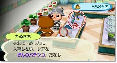 色々コンプには程遠く 昨日の話ですが、コンビニに初めて銀のパチンコが入荷!!普通のパチンコの隣にあったから、何これ?!というのが、正直な感想でしたよ(笑 後は、金の釣りざおとアミですねー。ま、一年がかりで頑張ります!w 昨日は、『しんぶんしのかぶと』をもらうために、全キャラ総動員でしたが、そんな中・・ゆり姉さんが 初物ゲットです♪ ゲンゴロウって水面にいるのね!!びっくりw ♥ More from my site2009-01-30 吃驚な展開で!2009-01-19 銀のオノ!2008-12-18 クローバーファーム2008-12-19 銀スコップの効果 By AKRMA | 2009-05-06 | 道具 | ← 迷子ちゃんとの一時 やっと会えたね! → 8 thoughts on “色々コンプには程遠く” AKRMA 2009-05-07 at 20:15 おお、一緒ですね!! やることが結構あって、大変です(笑 でも、楽しんで一つ一つ埋めていきましょう! また、遊びましょうねw AKRMA 2009-05-07 at 20:10 やっぱりやっちゃいました?(笑 アメンボは気がつくのだけど、あの陰影が微妙でしたものねw 私なんて、いまだにハチを捕まえれません>< 一年中いるから良かったけど、 期間限定だったら、多分季節が進んでいないかも^^; お互い頑張りましょうねーー! AKRMA 2009-05-07 at 20:08 あ、確かに!! かえる釣りも絶対に変ですね(笑 自慢すると、結構不気味な動きですよね。。 青カエルで良かった^^; AKRMA 2009-05-07 at 20:05 私も最初、おかしいなーって思っていたんですよ! で、あれっと思い網を使ったらあっさりでした(笑 そうですよね!!虫でした!! 陰影がちょっと不気味でしたが(笑 エフママ 2009-05-07 at 18:20 こっちもパチンコ ゲットでした いつかは スコップ埋めてほしい。。。。 ストローもまだです がんばらなくては>< あっきい 2009-05-07 at 14:06 こんにちは 私も先日、ゲンゴロウを初めて捕まえました!! 最初は釣り竿使用でした[絵文字:e-351] 今回はアミの使い方が難しくて、果たして1年でコンプ できるのか・・・?!ともう弱気になっています。 まのつくひと 2009-05-07 at 02:11 カエルが釣れるのもどうかと思うのです^^^^^ シーオンヌ 2009-05-07 at 01:30 私、ずっと竿で釣ってました・ だって川にいたので・・・。 虫だもの、あみですよね[絵文字:v-219]