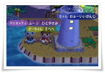 しのぶ☆さんがお帰りになり、灯台のぼりを諦めた後・・・先に来ていたぴかいち村のがーちゃんと灯台横のベンチでまーたり♪