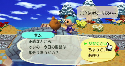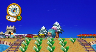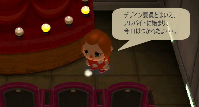 新しくデザイナーのゆりさんが引っ越してきました。そう、一人当たりに8枚しかデザインを飾れないという壁にぶち当たり、助っ人として来てもらったのですが、DS時代にも作った事の無いキャラがいいなぁーと攻略本を読みあさり、決めました!そう、かなりクールなお姉さま系に♪目つきが、きっつーいけど、結構気に入りました(笑