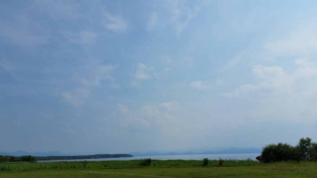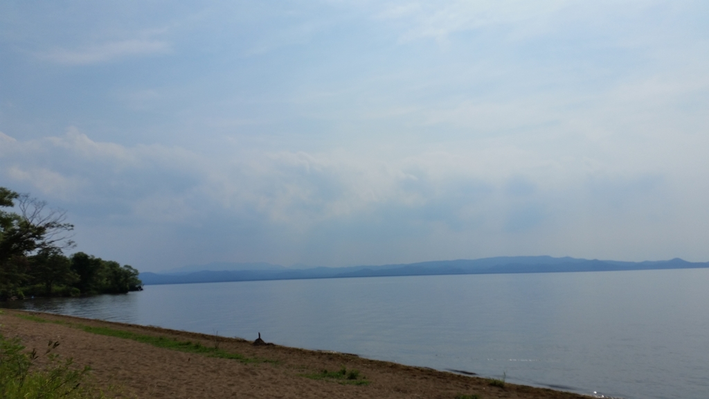 全体が見えないのでわかりずらいですが、本当に大きな湖でした。天気予報の日本地図🗾に出るはずだわね。あまりの暑さに、こちらにはほんの数十分しかいられず、場所をセブンに移しちゃいました。