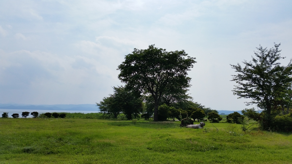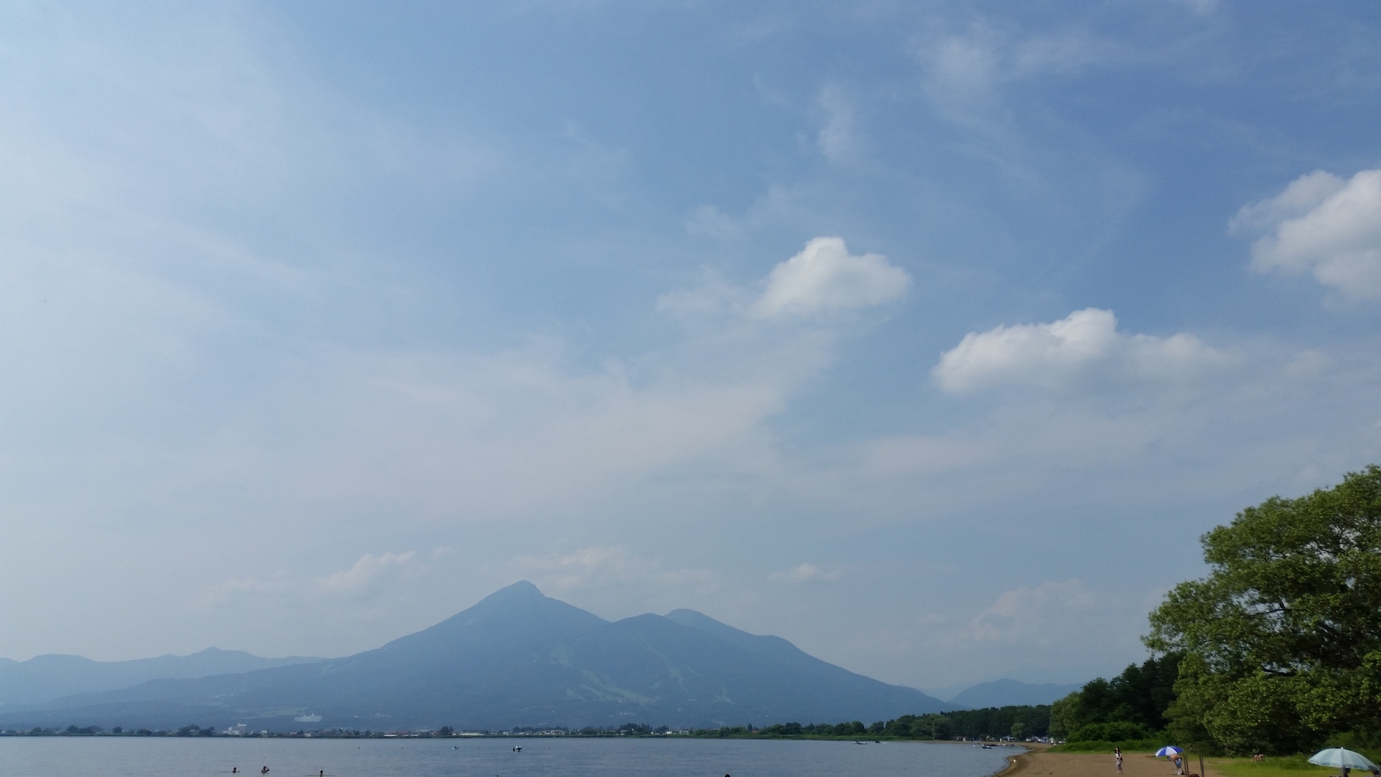でも、波も風も全くなくて、本当に暑い日で、遠くに見える磐梯山も何となく靄がかって見えました。