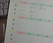 で、大きい丸はワタクシ。真ん中のちっこいのが旦那さん。レ点は更年期対策の漢方を飲んだかどうかのチェック…。