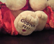 これ、ゴディバのチョコ抱いているんですよ^^。フワフワで、触り心地も良いのです。アンヨには…