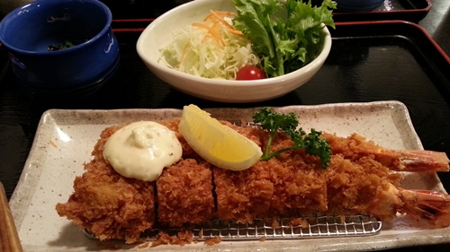 夜ごはんは御殿場行くと何時も寄るお店で、ジャンボエビフライをいただいてきました。