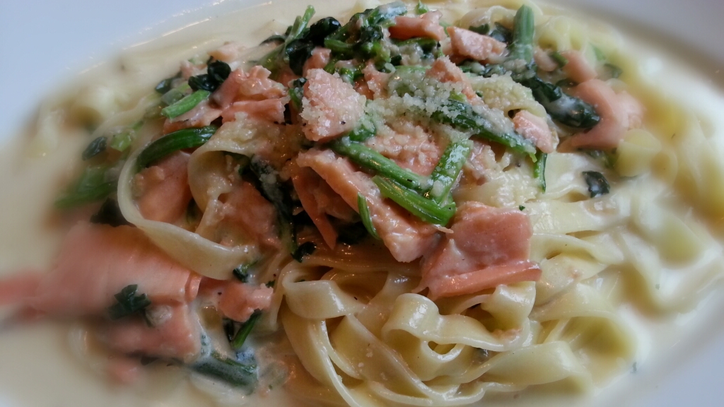 こちらはサーモンとほうれん草のクリームパスタ。その他、ズワイガニのサラダがとっても美味でした♬