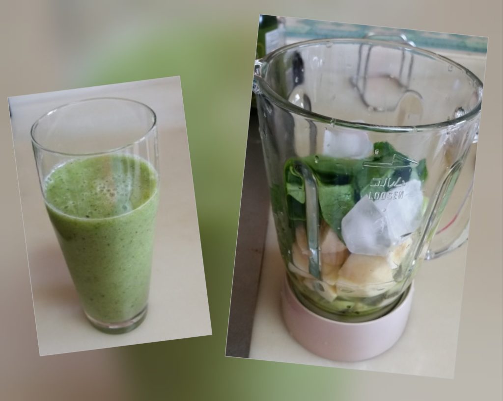 といことで、今朝は某有名サイトのグリーンスムージに挑戦。小松菜が一把入っていますが、ほとんど気にならないでバナナ・リンゴ・キウイの味で美味しかったです。