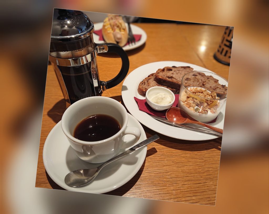 でも、ベーカリー沢村は星のホテル宿泊の方々かなで混んでいたので、落ち着いた雰囲気の丸山珈琲でいただきました。