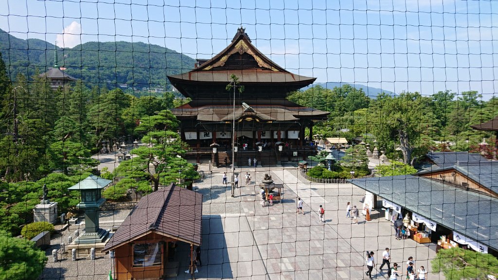 そしてこちらが本堂側です。牛にひかれて善光寺参りといいますが、多くの方がお参りに来るのでしょうね。真夏のお寺参りは避けた方がよいかと思いますが、海外の方も多く見受けられました。