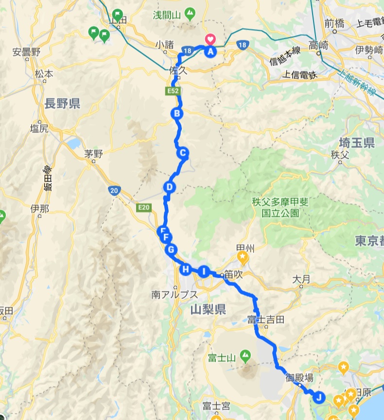 結果的には次のマップの通り走り箱根まで到達です。