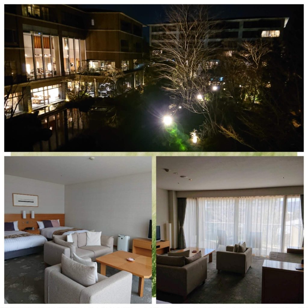 連泊ですが、隣のホテルに移動です。こちらの方がお風呂もよいしお部屋もよりゆったりです。空いていて良かった。朝から温泉三昧で、自動あんま機も快適です。朝は軽く部屋でパンとコーヒーで済ませ、昼は歩いて近くのラリック美術館でランチしてきました。