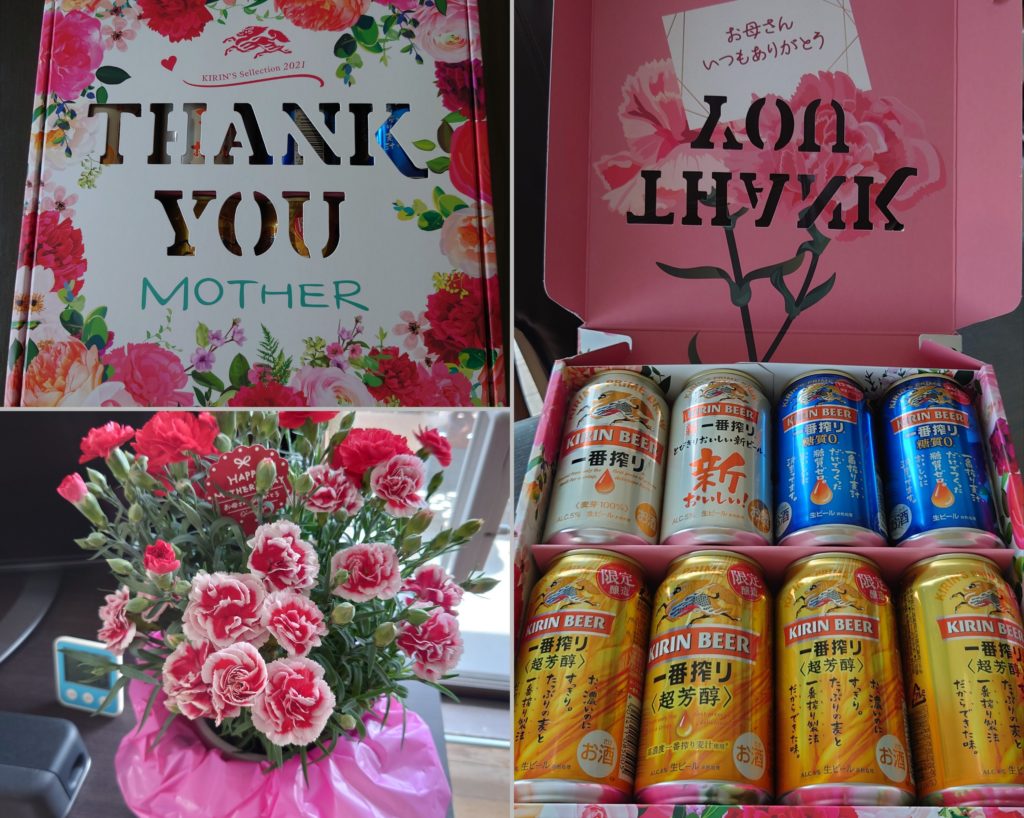 母の日には Amazonから、娘宛の荷物が届いて、ラインでその旨を伝えたら一言母の日だで。と。 早速開けてみると重い。あら、母の日ね(笑) 蓋を開けると… わかってるわね(笑) ありがとう。最近は母らしい事もしてませんが、貰えるとうるしいですね♪ 勿論義母にもカーネーションを届け、先月の講座で作ったアーティフィシャルの額絵を渡したらとても喜んでくれました。 受け付けの窓越しでしたが、久しぶりに姿を見れて元気そうで良かった。 一応、私の手作りですよ~w By マティ | 2021-05-09 | 季節のイベント | ← 初めてのお店 珍しい八重 →
