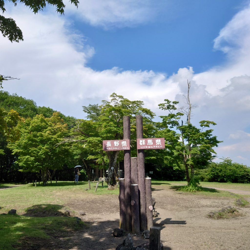 と、地面を見ると、なんと!県境のラインが!!見晴台の看板もそういう意味だったのね、と今更ながら気づきました(笑)本当に群馬県と長野県の境なのですね~。