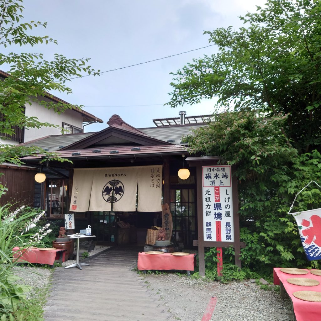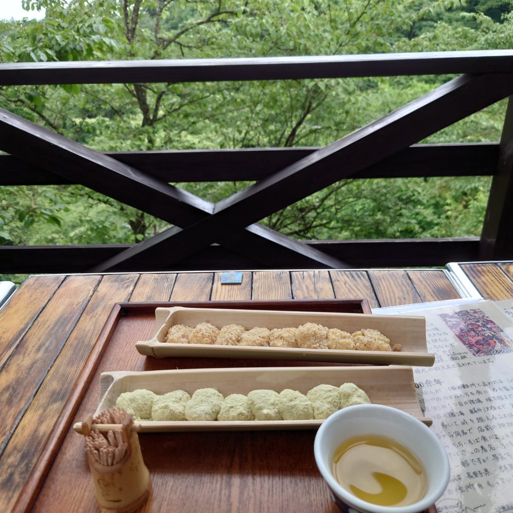 しばらく広大な景色を満喫して戻り、神社の方に行くと前に「ちからもち」のお店が!疲れたし休もうか…
