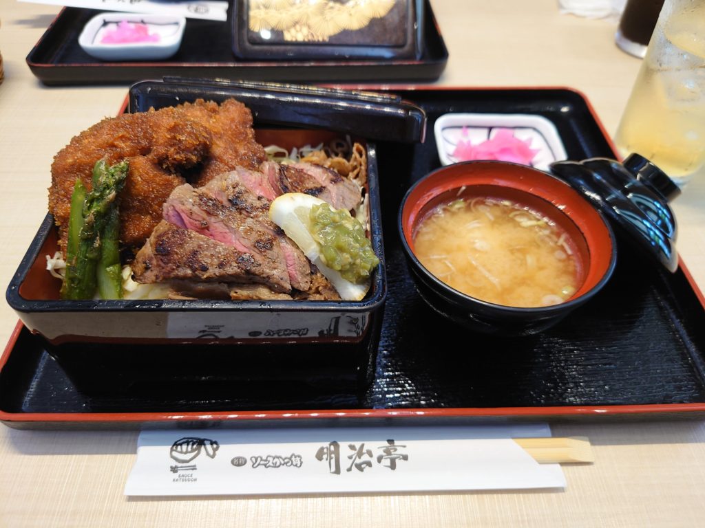 夜ご飯は先日バナナマンのTVで軽井沢特集をしていたのですが、その時に紹介していた明治亭のソースヒレカツと和牛の丼にしてみました。これがまた癖になりそうなお味で、美味しかったです。