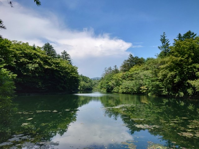 ブランチのあと、これまた初めての雲場池に行ってみました。昼過ぎでとても良い天気でしたが、池の周りには木々が生い茂っているし、吹く風がとても心地よかったので快適でした。