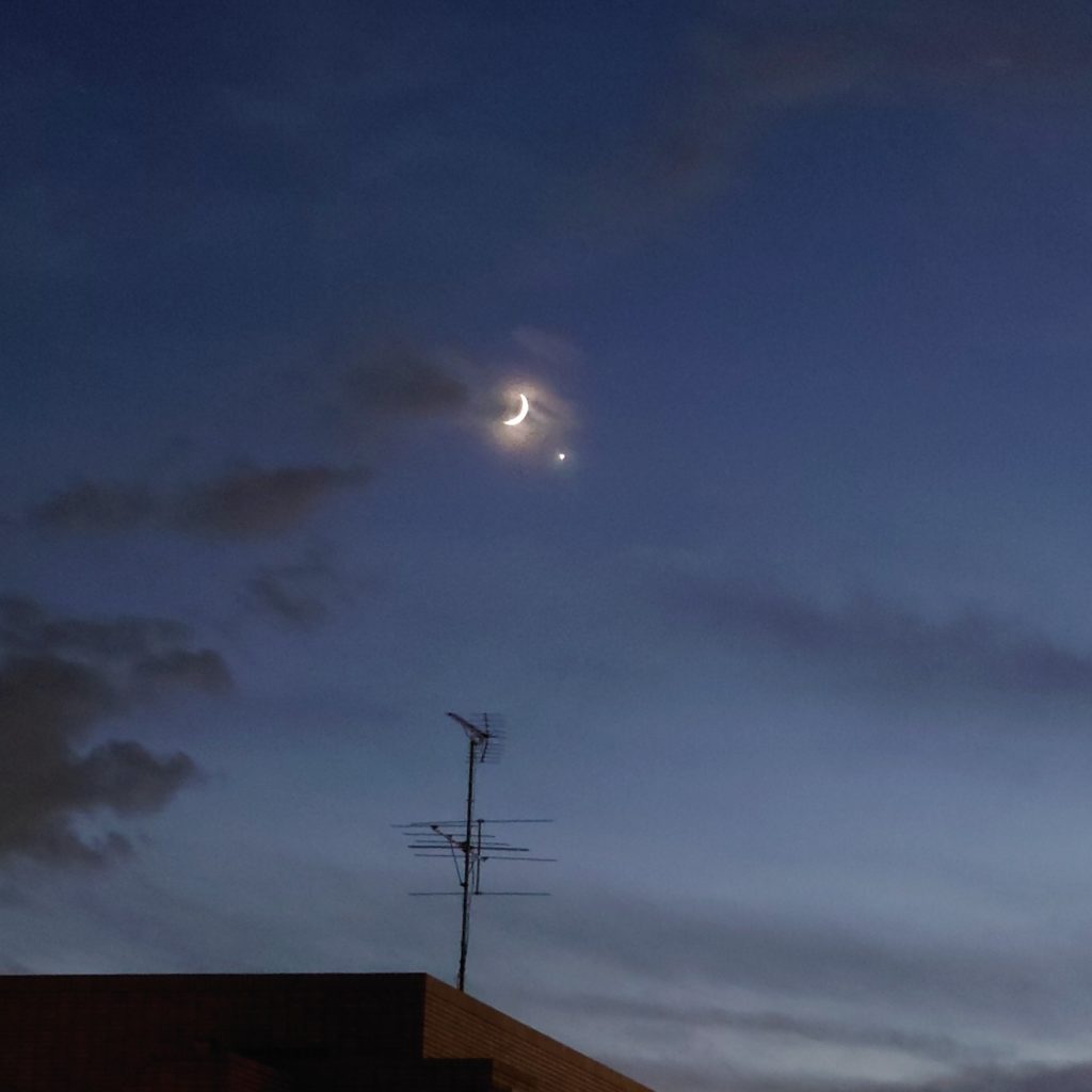 一昨日の夕方に素敵な月の写真がとれたので、アップしましょ。スマホでもかなり綺麗に取れたなと満足の一枚です。