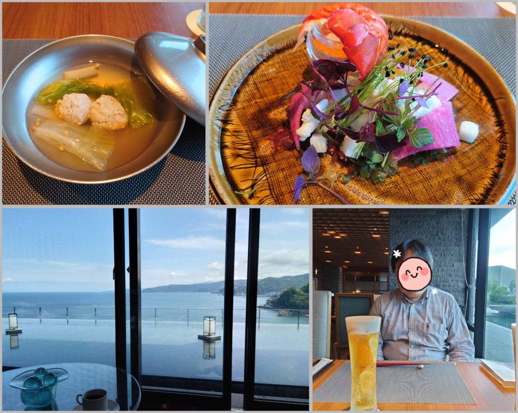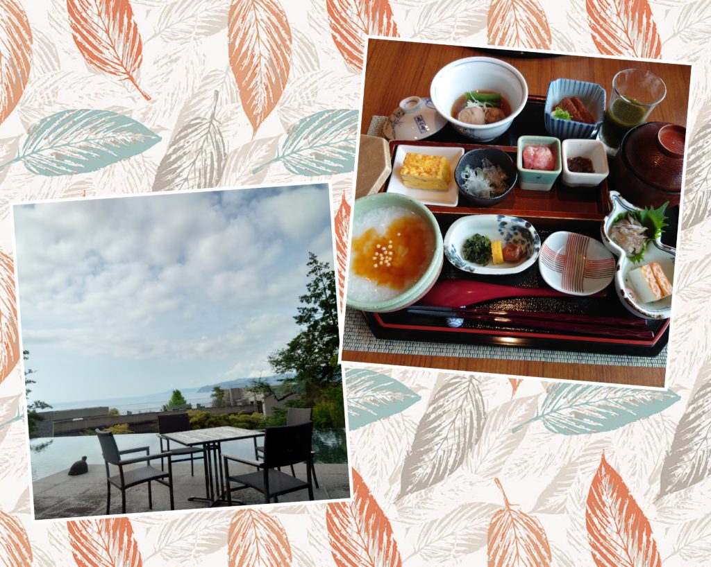 熱海は近いし、海を見ながら温泉に入れるからいいですね。ここで和食の夕飯を頂くの初めて。どれも綺麗い飾り付けられてるし海の幸盛りだくさんでとっても美味しかったです。 明日父の病院があるので、そのまま茅ヶ崎に行きます。二泊しましたが、良く寝ましたー。