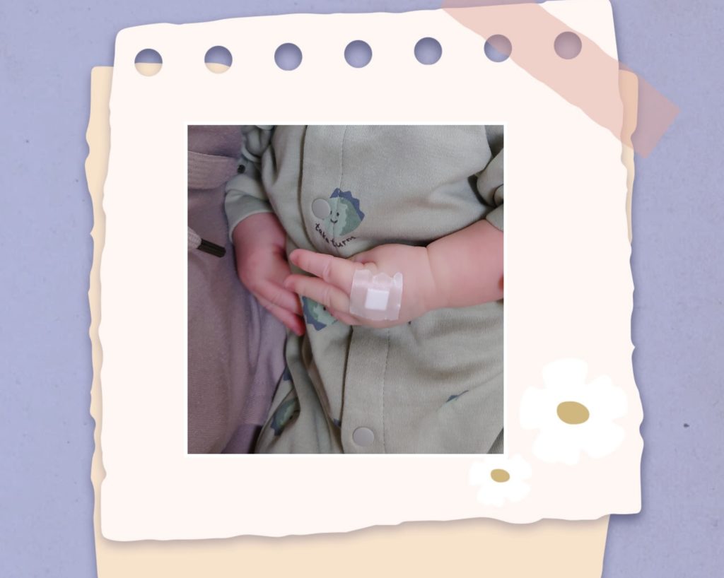 小さなおててに痛々しい。でも、この検診で、こんなに大きな声で泣けたんだ!というくらい元気な泣き声が聞けて良かったです。本当に静かな赤ちゃんです。