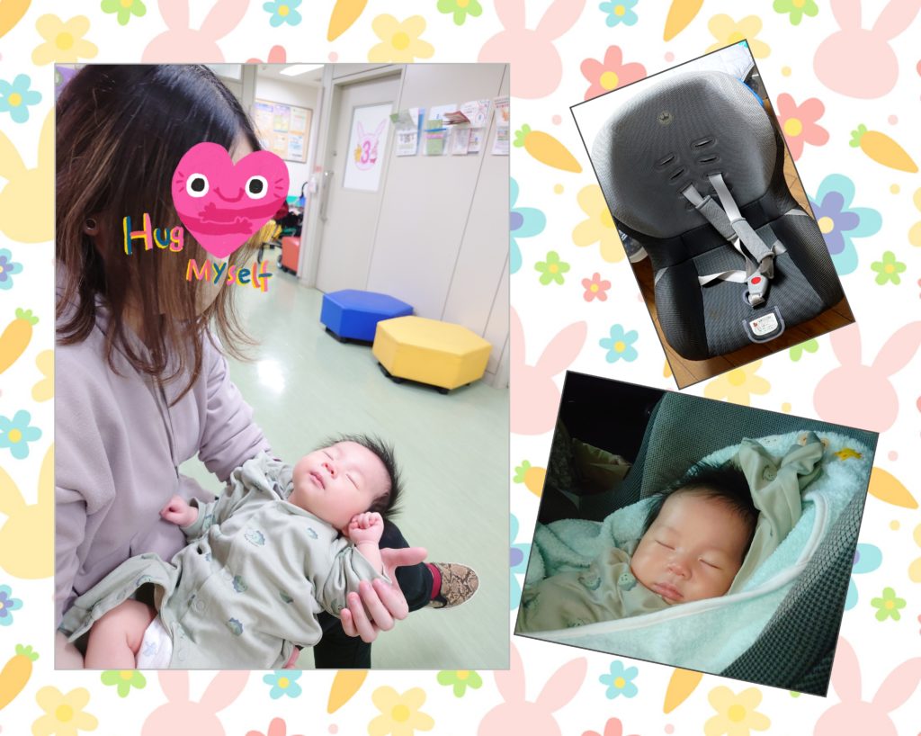それでも、ばばは頑張ります。二人を乗せて安全運転で一路東京へ。ベビーシートはスタッフのオジサマからお孫さんのものを譲り受けました。かなり年季が入っていますが短い間だけなので良いかなと。彼女は車は無いので。