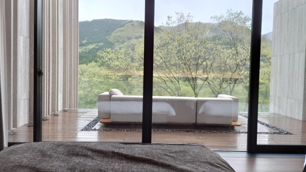 夕方から霧が出てきて、幻想的な雰囲気です。お風呂上がりのビールは格別です。