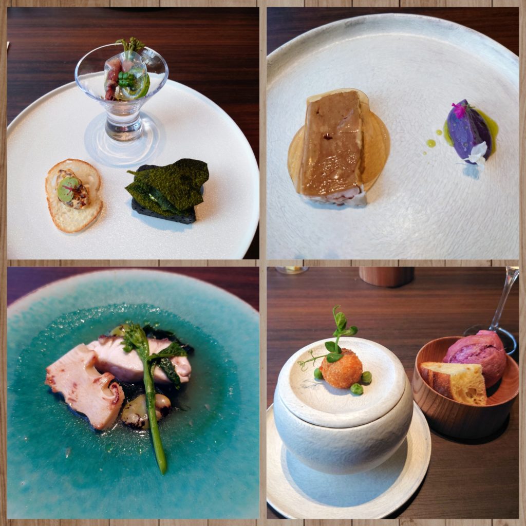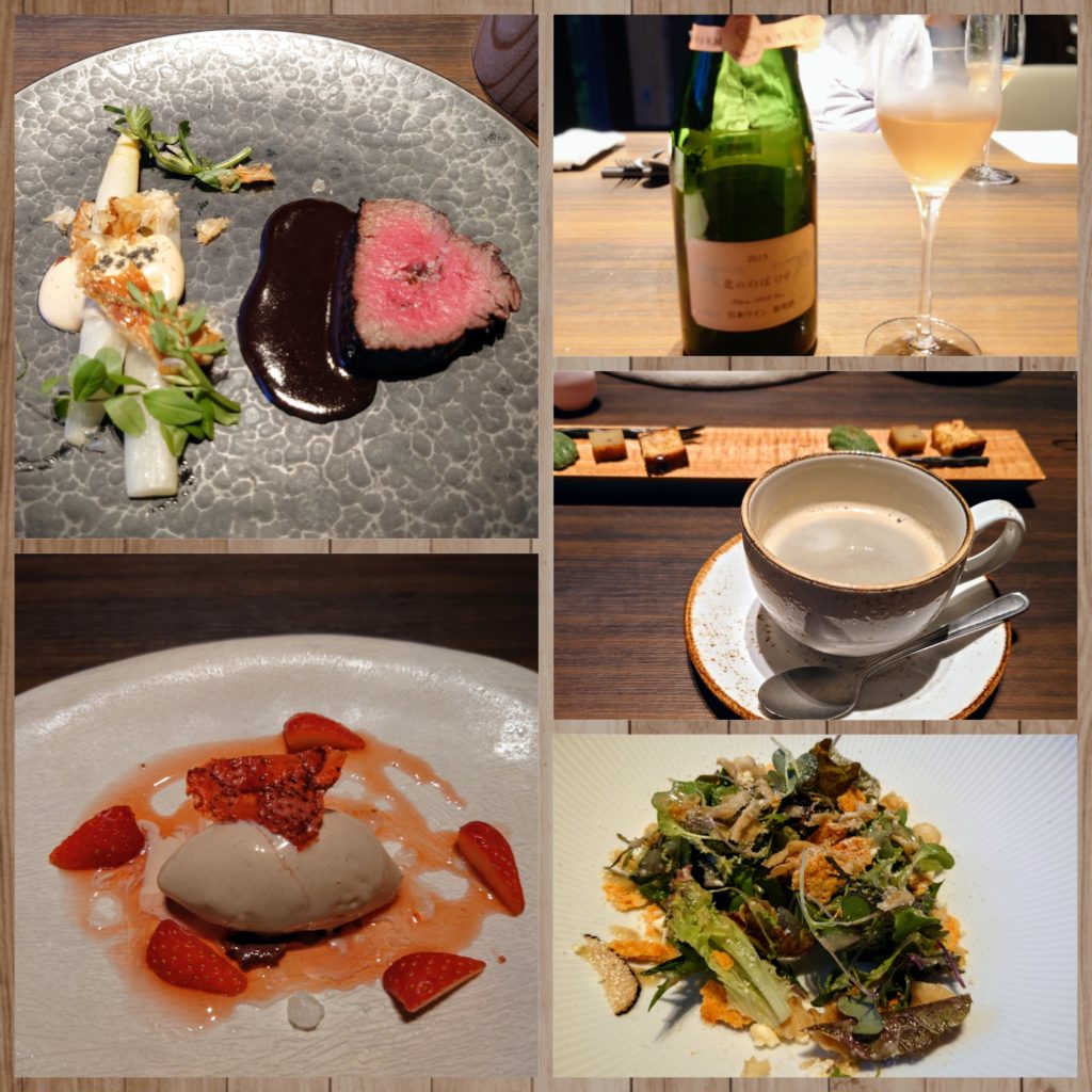 今回はテーブル席でのフレンチでしたが、少し早めにいただいたので、夕暮れのお庭もみれて素敵でした。