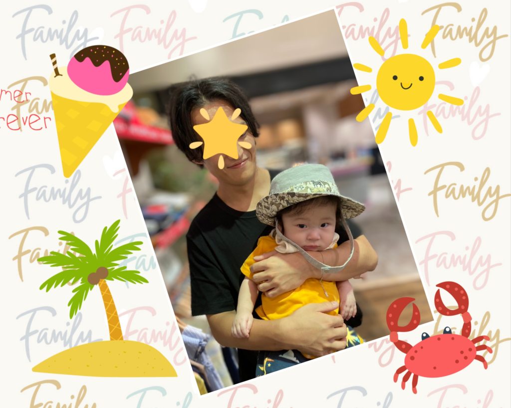 暑さ対策の帽子を買ったようですが、ちょっと迷惑っぽいまごちんの表情が笑えました。でも、きっと暑くて疲れたんだよね。それでも、パパと一緒の時間を楽しめたかな。気候が良ければずっと楽しいと思いますよ。これからだね。