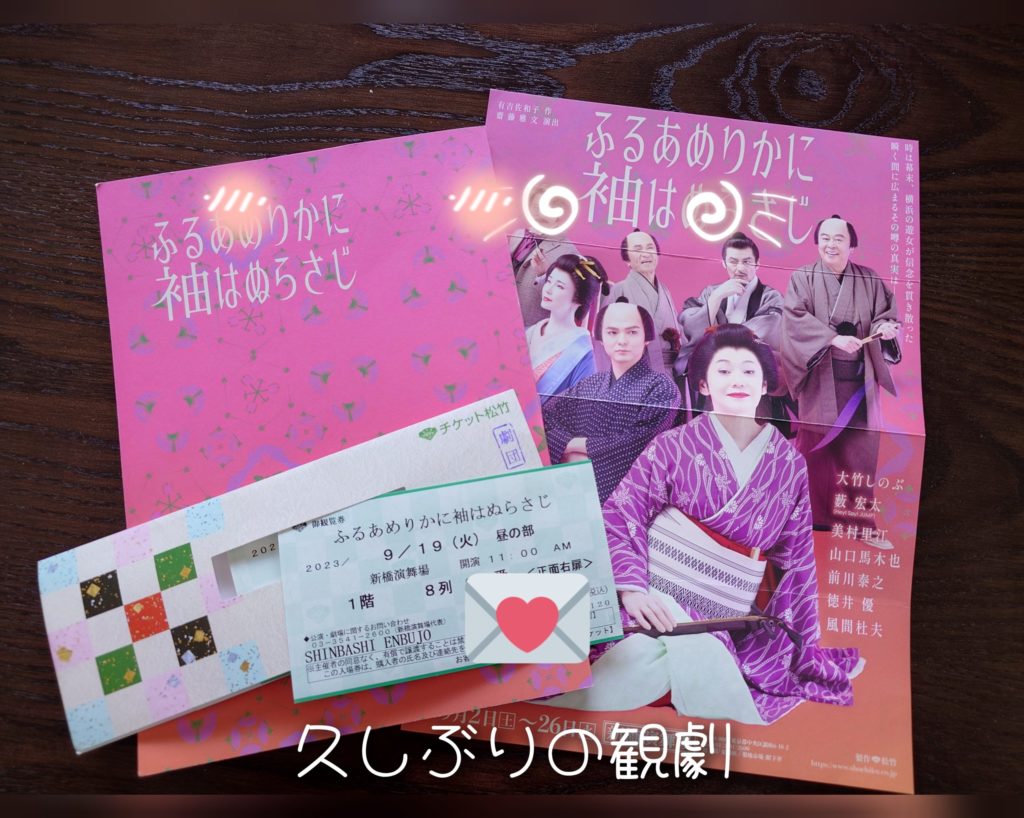 新橋演舞場も久しぶりでしたが、関係者ともありとても良い席を取ってくれました。最初内容を見たときはちょっと悲しいお話なのかと思いましたが、思った以上に面白い内容でした。