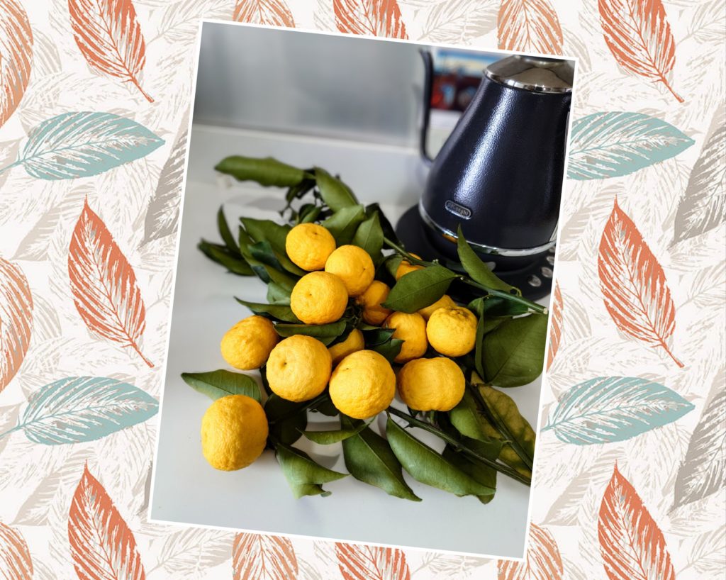 昼前にピンポンと鳴り出てみると、階下のおばさまでした。マンションの一角にゆずの木を植えていらっしゃるのですが持ってきてくれました。