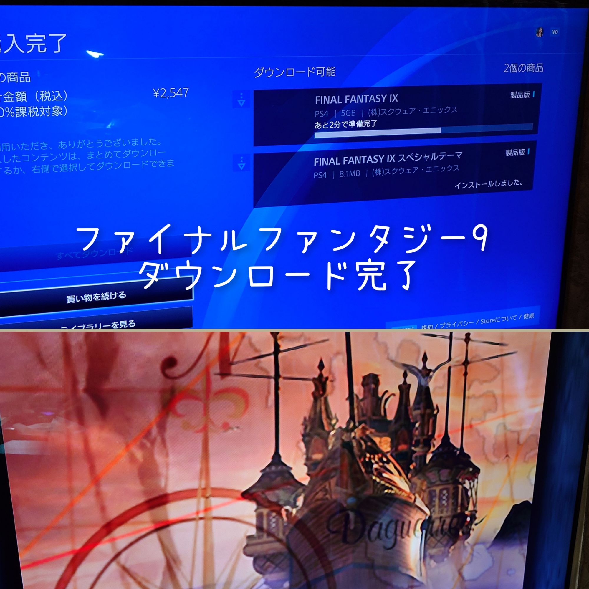 でも、調べたらFF9がダウンロード版でできるって!!!これは、以前何度もクリアしてるゲームですが、ソフトもハードもダメで父がもう一度やりたいと言っていたものです。即決でダウンロード版購入しました。