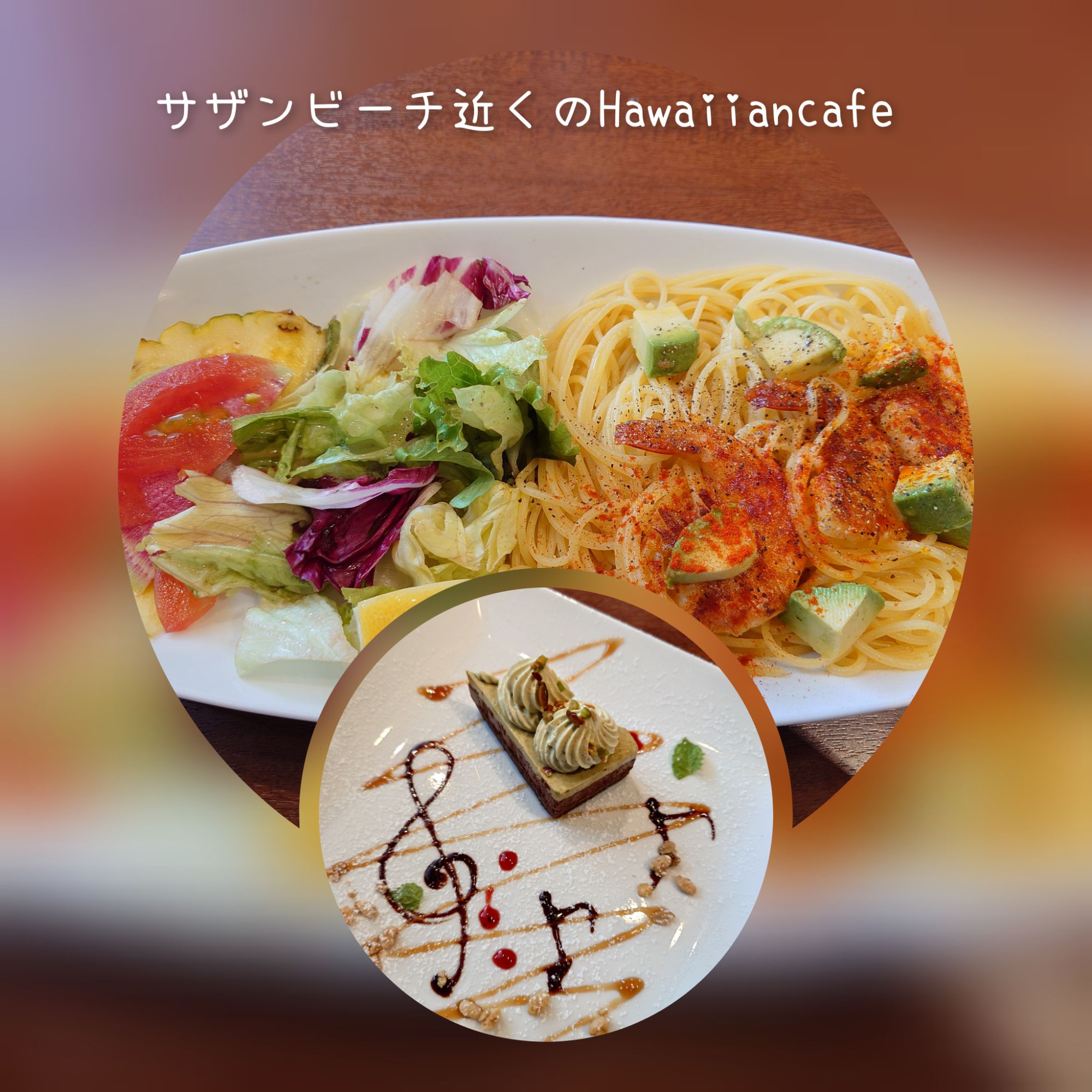 着いたお店はHawaiiancafeだった!でも、ステーキで検索したのにね…それでも、ステーキはあったので父はステーキ、私は夏らしいレモンパスタをいただきました。