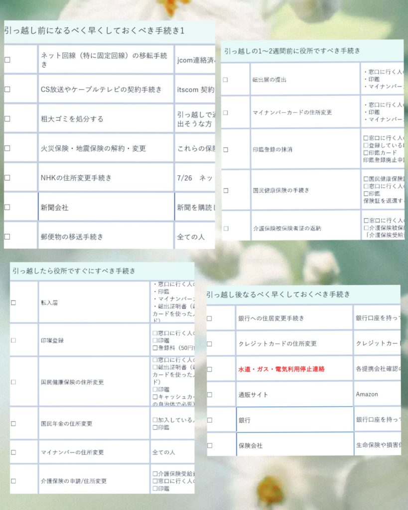 とりあえずネットで検索して引っ越し関係の必要手続きを効率よくするためにもリストアップしましたよ。