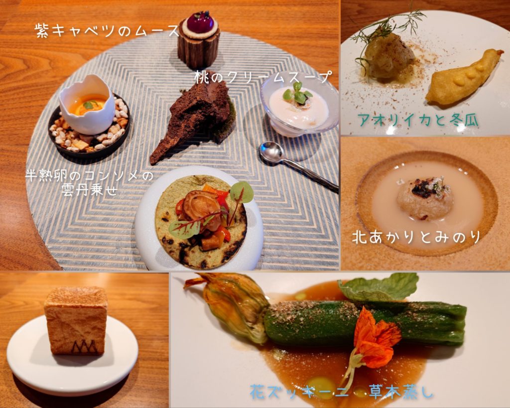前菜から始まりますが、今回も季節の食材をふんだんに使ったアイデア料理が満載でした。