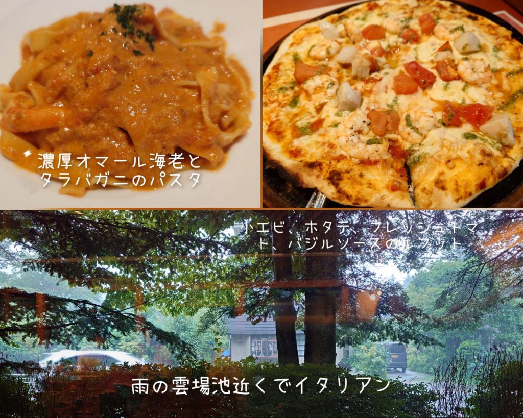 この辺りから急に雨足が強くなって、結構危険な降り方でしたが目的のイタリアンに無事到着。ここのお店は待たされることが当たり前なのですが、時間が14時近くだったのですんなり入れました。