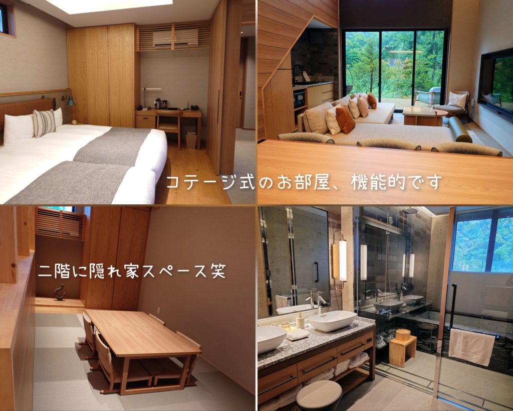 軽井沢の宿泊は初めてのコテージタイプです。昨年9月にオープンしたのですが、混んでて予約がなかなかとれず、台風のお陰で泊まれました(笑)