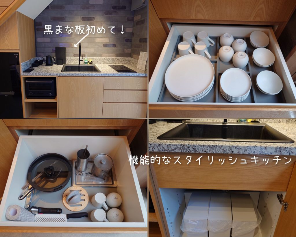 キッチンはすごいスタイリッシュで、使いやすやすそうです。シンクにステンレスの網が敷いてあって(撮るの忘れた)、洗いながらそのまま洗い上げられる~!我が家にも欲しいと思いましたw