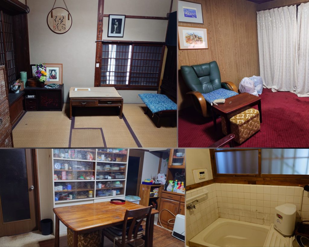 私のおじいちゃんが建てたお家でしたが、昭和な家。左上の畳の正方形部分には掘りごたつがありました(炭いれてたな)。この部屋は小学生の頃私の部屋でした。右上は大学以降に私の部屋として使っていた昔の応接間。