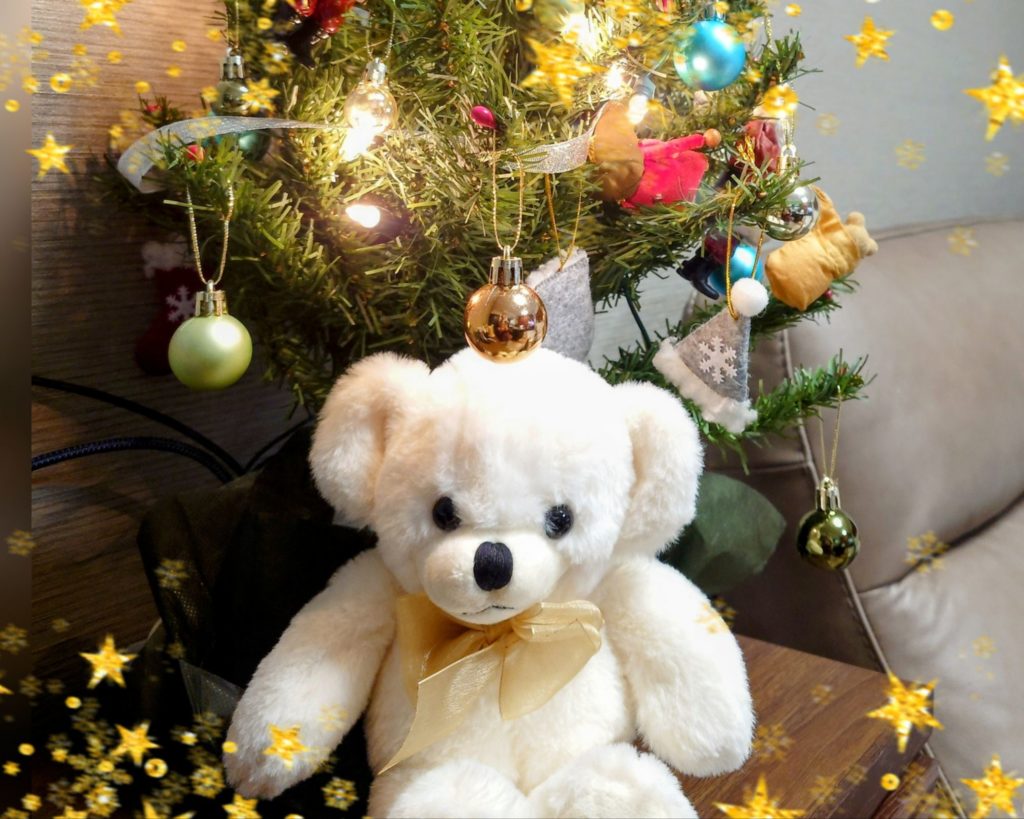 この話をしたら、クリスマスプレゼントの方向性が決まったようです。クリスマスツリーがとても綺麗だったので記念にパチリ。