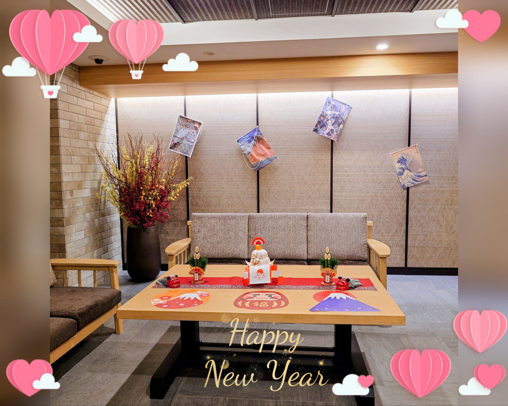 施設は表には角松、ロビーもお正月の体制になっていました♪