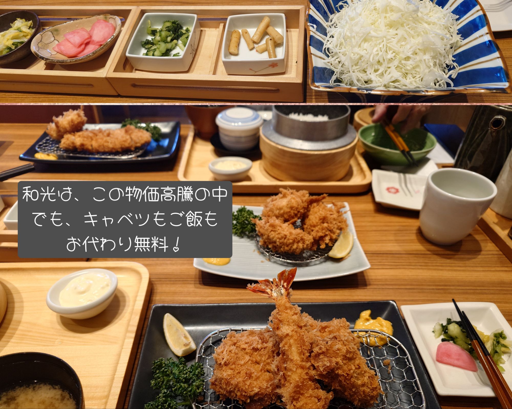 ここの和光→和幸はお店が広くて雰囲気も良いしご飯も釜炊きで美味しいの。