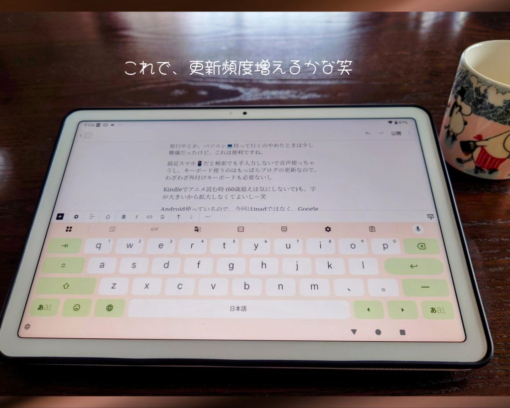最近スマホ📱だと検索でも手入力しないで音声使っちゃうし、キーボード使うのはもっぱらブログの更新なので、わざわざ外付けキーボードも必要ないし