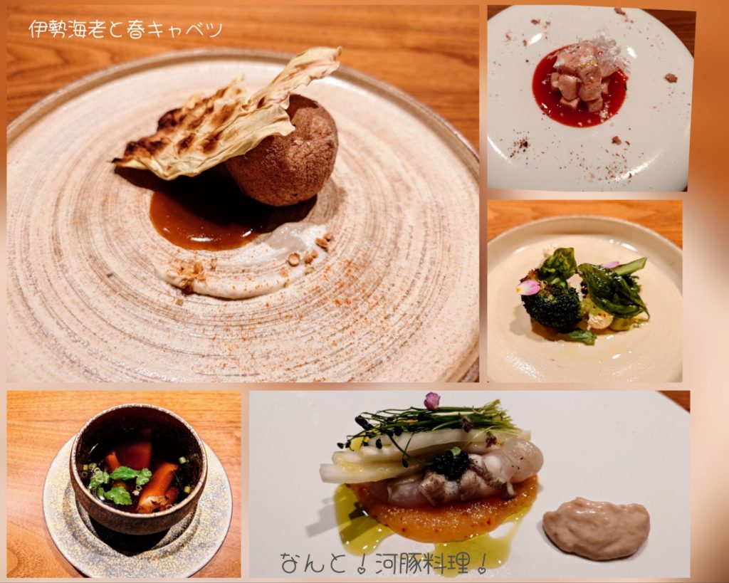 二回載せちゃったけど、茶色のボールの中に、ごろっと伊勢海老が入っていて、春キャベツの香り豊かでと周りのソースが絶妙なバランスが素晴らしい一品でした♪