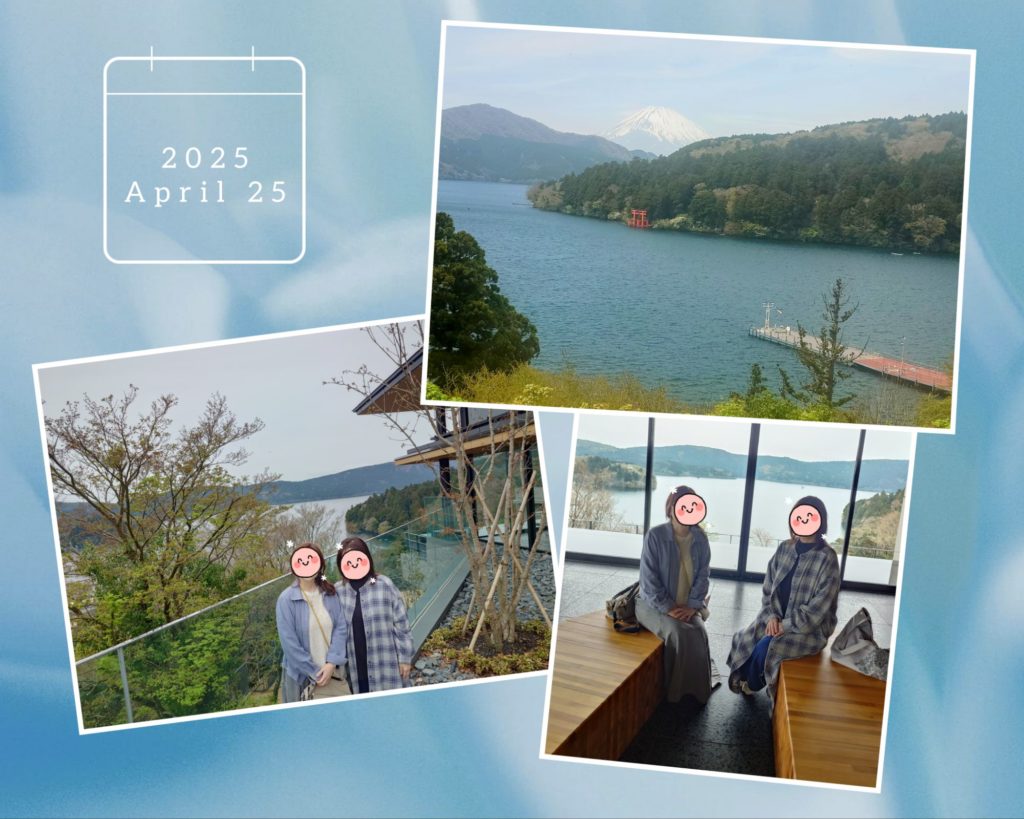 友は、どうせ遅い目覚めでしょうからと、朝から部屋の半露天にお湯を入れて(硫黄の香りほのかの温泉)、ゆっくり、まったり浸かったり音楽を聴いたりして1時間くらい入り、その後は芦ノ湖を眺めながらのんびり過ごした私です。