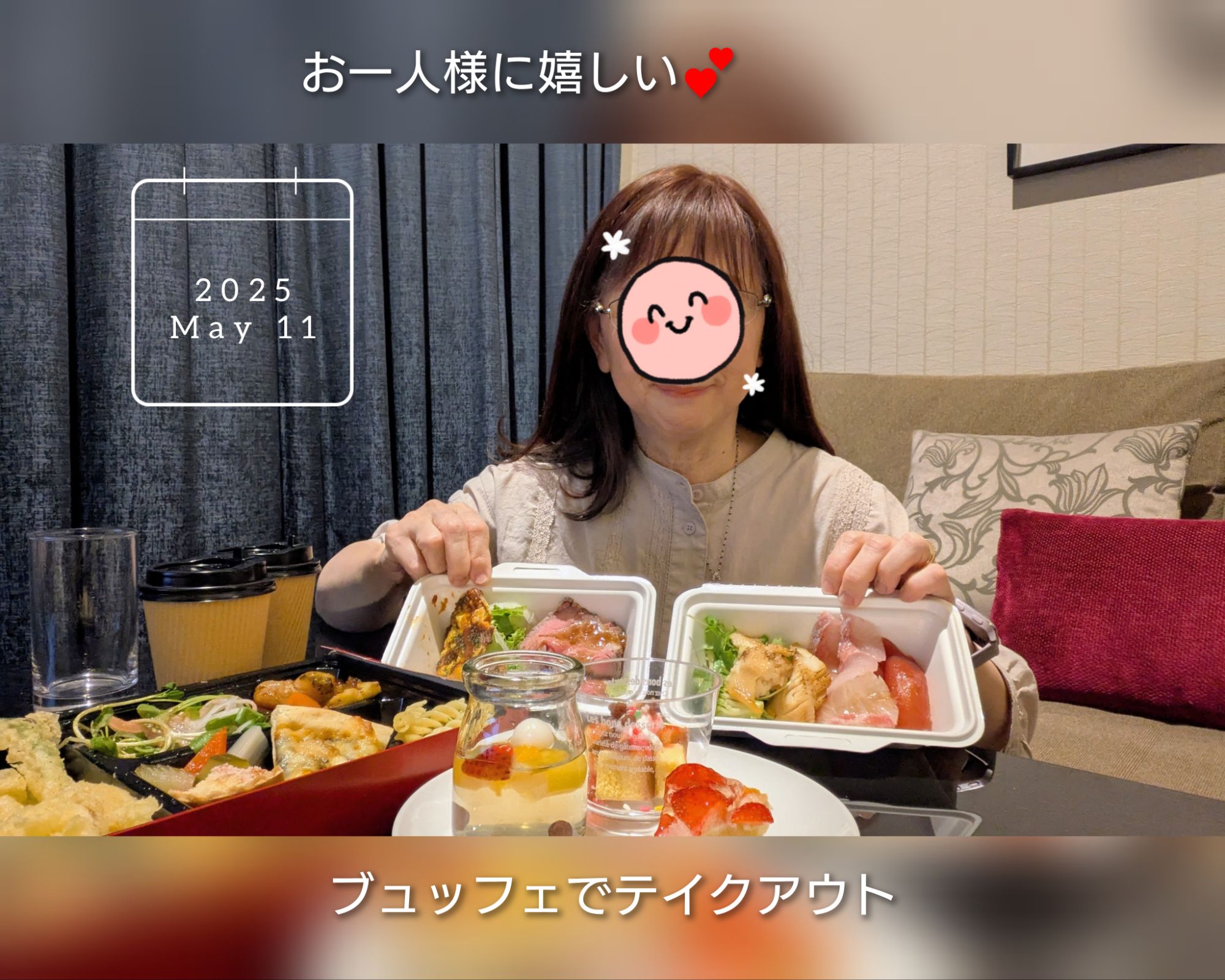 最近始まったようなのですが、ビュッフェのお食事を部屋で食べられるテイクアウトがあったので、お一人様としてはゆっくり食べられるのでこちらをチョイス。