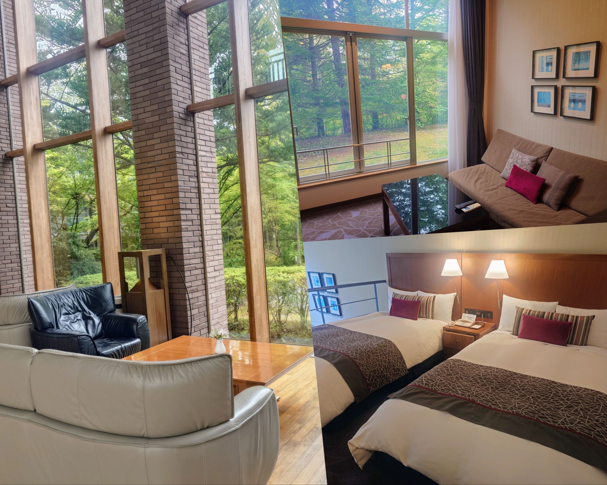独りでは広いお部屋でしたが、窓の外は別荘にいるかのような林に囲まれて落ち着きます。