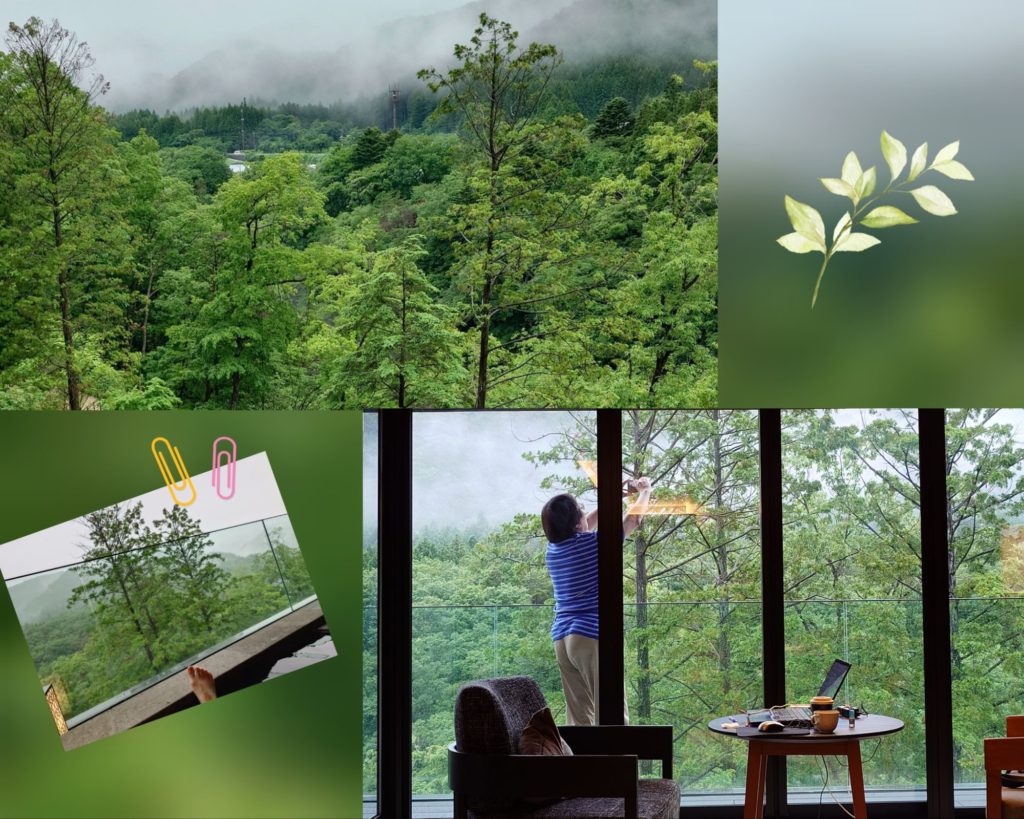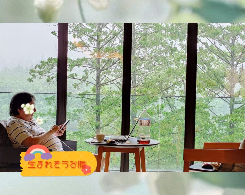 私はすることないから、外の雨でも撮ろうかと思ったら、赤ちゃんがいそうなお腹の旦那さんが映っていた💦